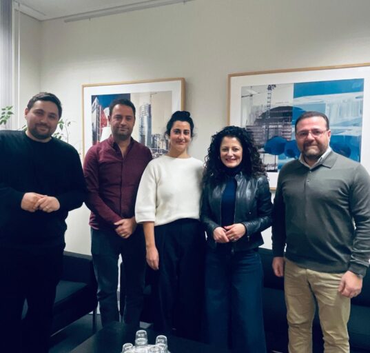 BAT-Cemevi Yönetim Kurulu İkinci Başkanı Kadir Şahin ve yöneticiler Deniz Yıldırım Caliman ile Fuat Şengül; Berlin Eyalet Çalışma, Sosyal İşler, Uyum.