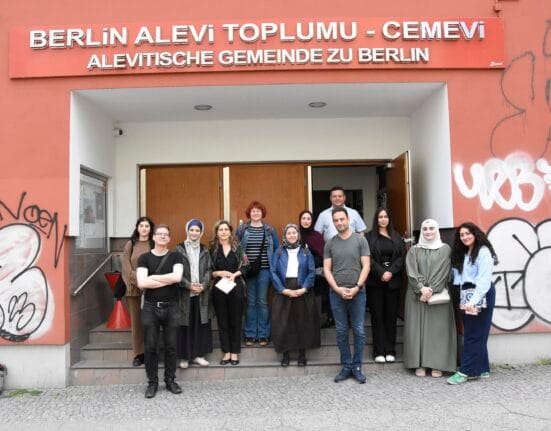 Cemevi İkinci Başkanı Kadir Şahin ile Sayman Haydar Narin’in bir süre önce makamında ziyaret ettiği Berlin Mitte Belediye Başkanı Stefanie