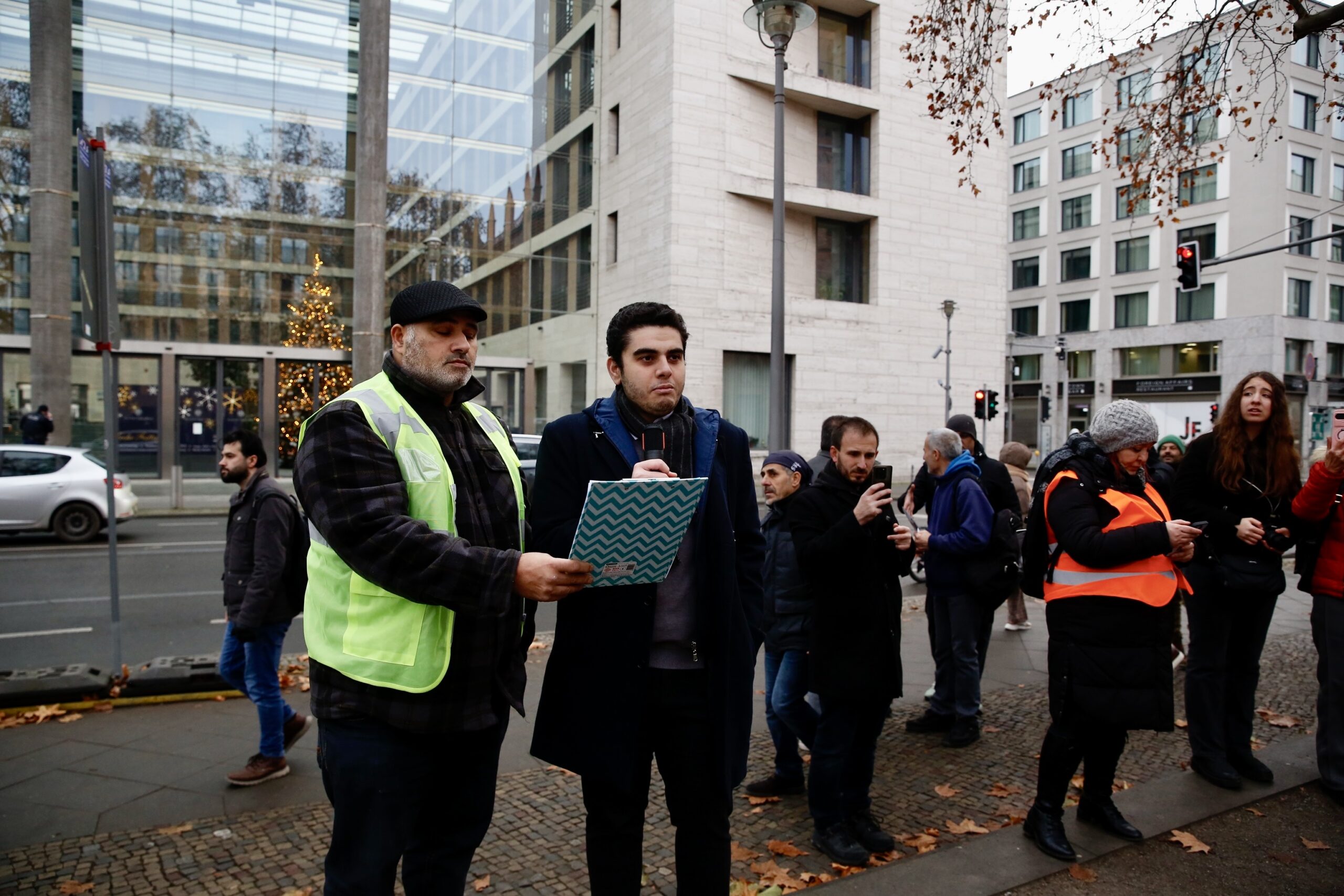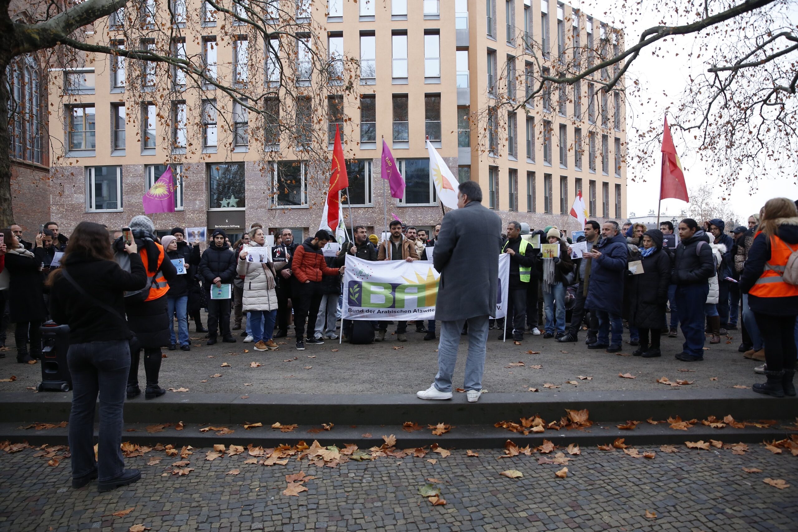 Dün Almanya Dışişleri Bakanlığı önünde gerçekleşen protesto eylemine Avrupa Arap Alevileri Federasyonu Başkanı Serhan Namlı, AABF adına İnanç Kurulu 2. Başkanı Hasan Doğan, BAT-Cemevi 2. Başkanı Kadir Şahin, Arap Alevileri Birliği Berlin Temsilciliği ile çeşitli demokratik kitle örgütü ve siyasi parti temsilcilerinin yanı sıra çok sayıda kişi katıldı.