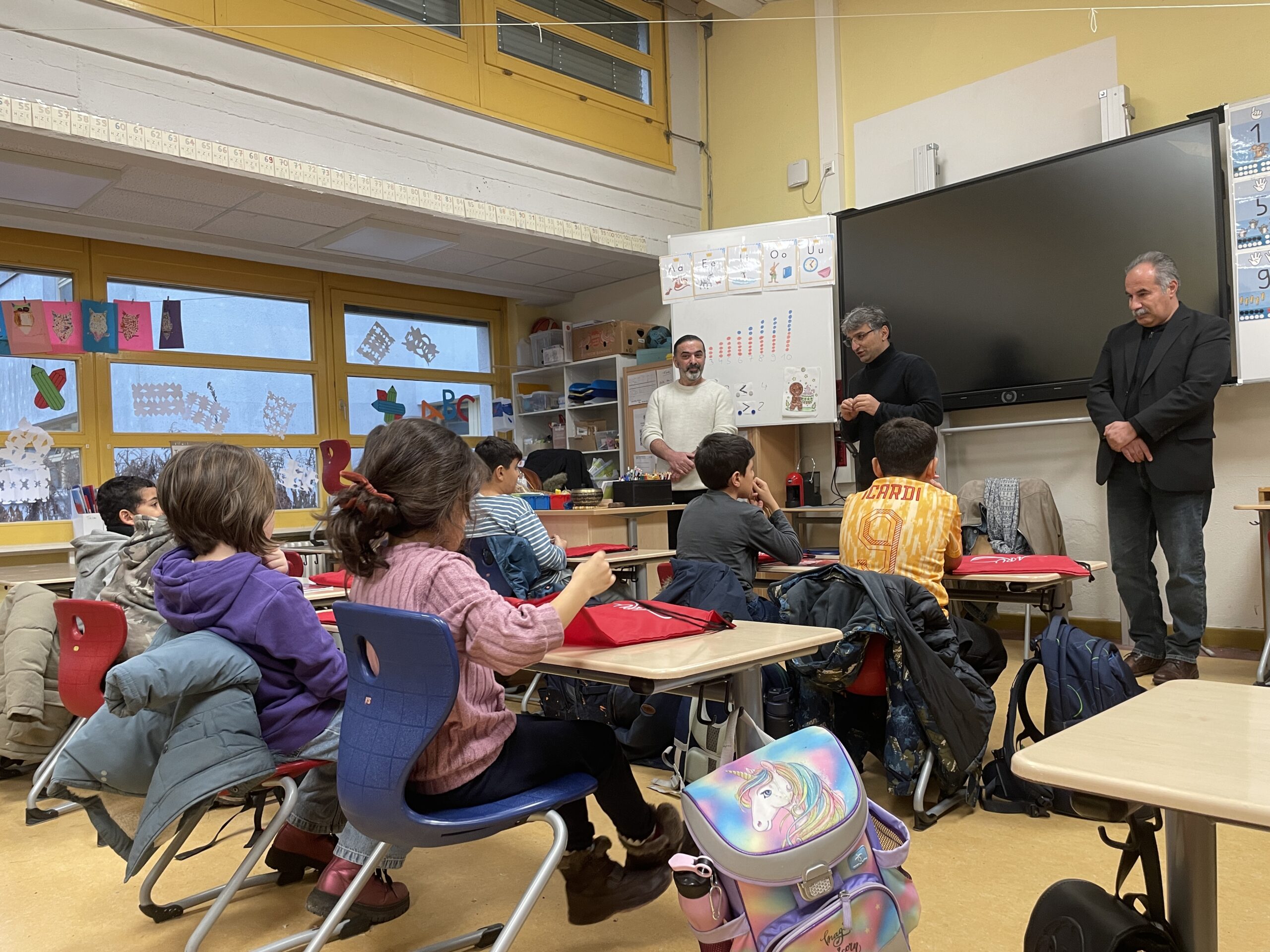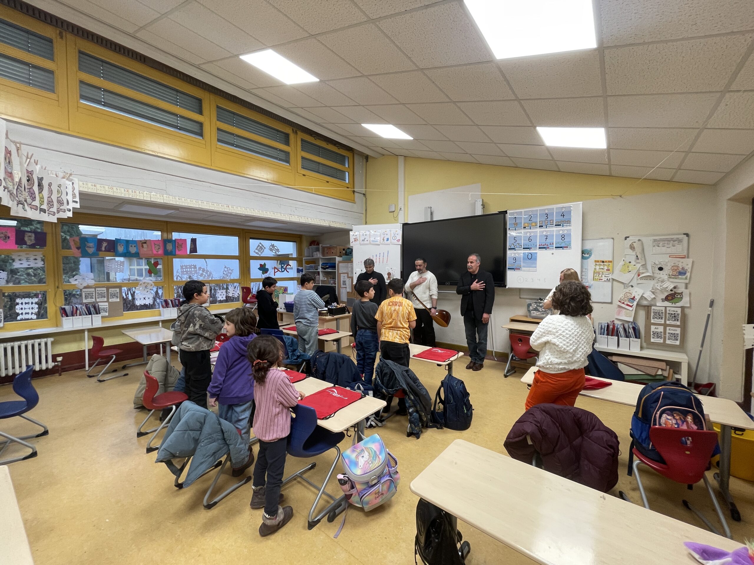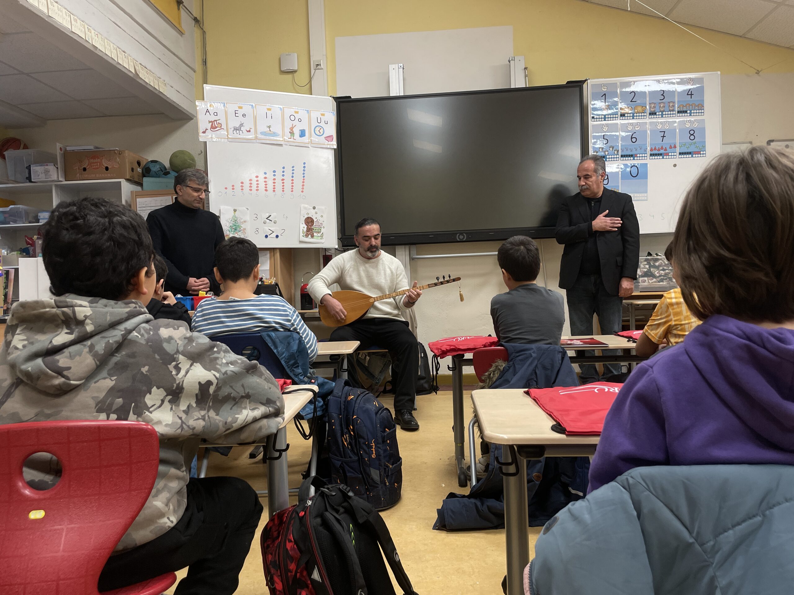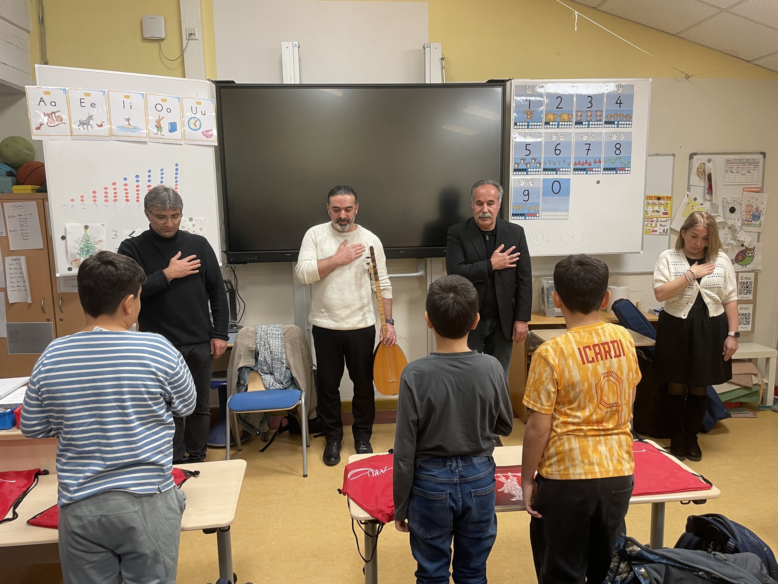Campus Efeuweg Grundschule’deki öğrenci canlar ilk derslerine gülbenk ve deyişle başladı. Dersin başlangıcına; BAT-Cemevi ARU Koordinatörü Erdal Çağlar, BAT İnanç Kurulu üyesi İbrahim Kazımoğlu Dede, öğretmen Afife Sürücü, Zakir ve öğretmen Uğur Sürücü ile aileler katıldı. Ders başlamadan önce ARU Koordinatörü Erdal Çağlar, ailelere öğrencilere derslerle ilgili genel bilgileri aktardı ve derse katılan öğrencilere küçük hediyelerin içinde olduğu ARU amblemli spor çantalarını hediye etti. Çağlar’dan sonra Afife Sürücü, Uğur Sürücü öğrenci canlara ve ailelere kısa bir konuşma yaptı. Ardından Uğur Sürücü deyiş okudu. Daha sonra söz alan İbrahim Kazımoğlu Dede, bu çalışmalarda emeği geçen Çağlar’a, Cemevi Yönetimine, ailelere teşekkür ederek gülbenk verdi ve öğrenciler ilk derslerine başladı.