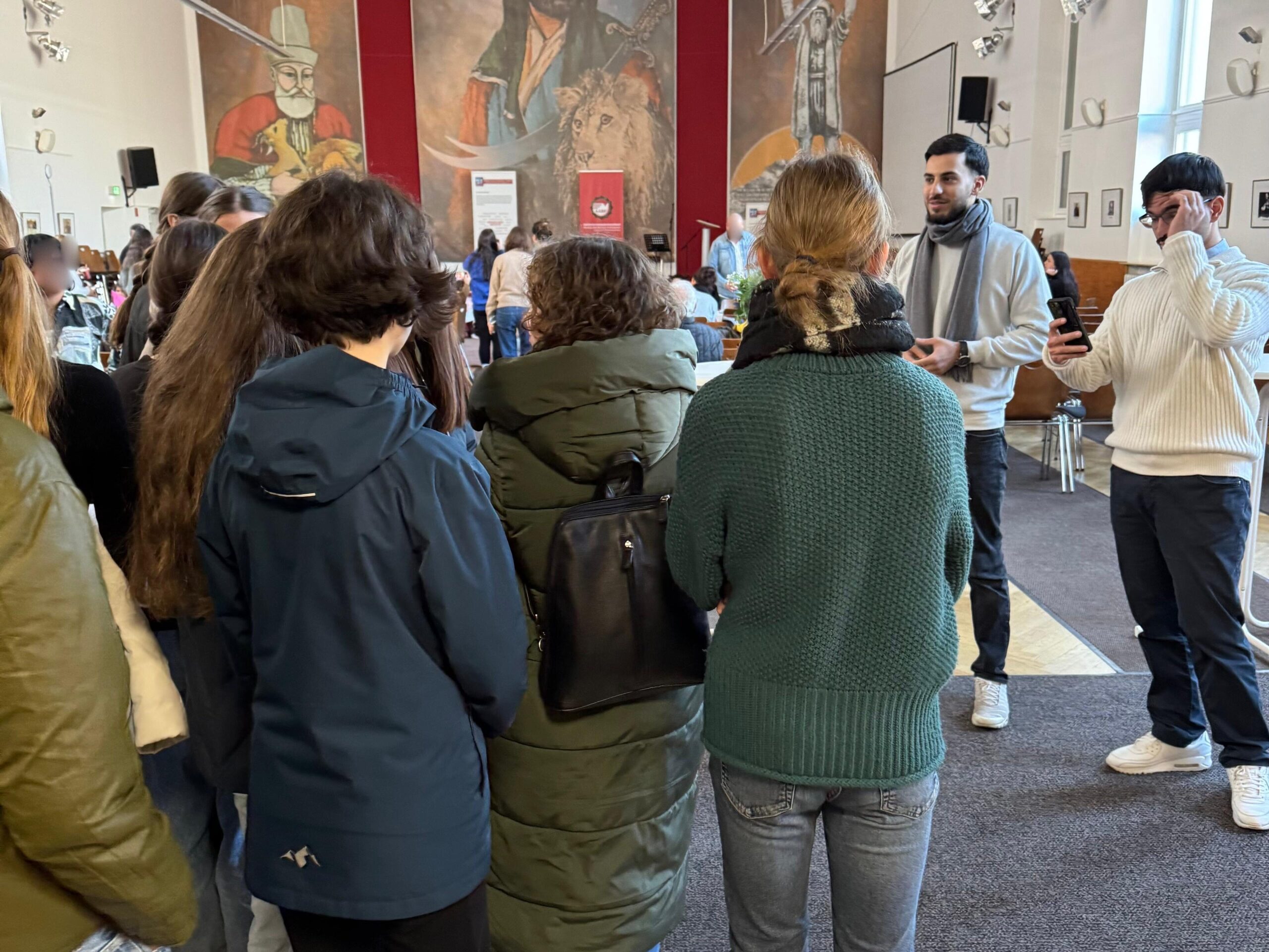 Beethoven gymnasium 9. Sınıf öğrencileri geçtiğimiz Pazar Cemevi’ne ziyaret düzenledi. Öğrencileri Cemevi adına BDAJ Yönetim Kurulu üyeleri Ali Kemal Kazan ve Deniz İnan Arduç karşıladı. Kazan ve Arduç öğrencilerle Cemevini gezerek gerçekleşen faaliyetler ve Alevilik ile ilgili enformasyonlar paylaştı.