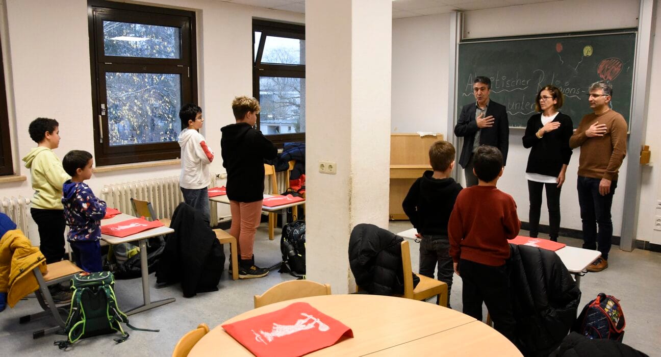 Annedore Leber Grundschule’de 8 öğrenci ile ilk dersin açılışına BAT-Cemevi ARU Koordinatörü Erdal Çağlar, Ercan Yıldız Dede, öğretmen Suzan Tanrıverdio katıldı. Ders başlamadan önce konuşma yapan Ercan Yıldız Dede, Aleviliğin sürekliliği için aile içinde başlayan eğitim kadar artık okullarda da bu tohumların atılmasının önemli olduğunu vurgulayarak, emeği geçen bütün canlara teşekkür ederek çocuklara başarılar diledi. Konuşmanın ardından ise Yıldız gülbenk vererek konuşmasını sonlandırdı. Daha sonra söz alan Koordinatör Erdal Çağlar’da derse katılan çocuklara ARU çalışmalarına dair bilgilendirme yaparak çocuklara Alevilikle ilgili kitapçıklar ile hediyeler sundu.