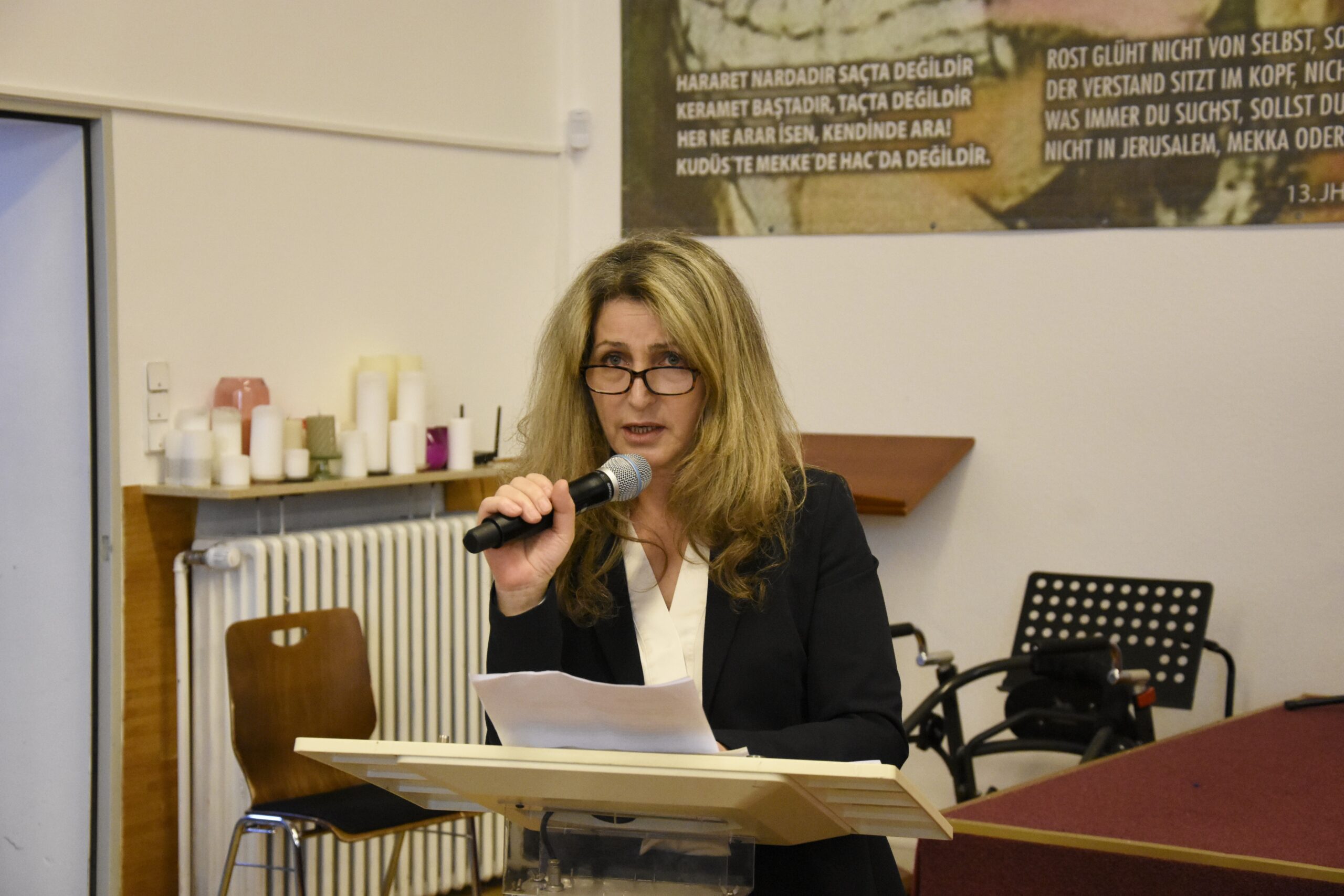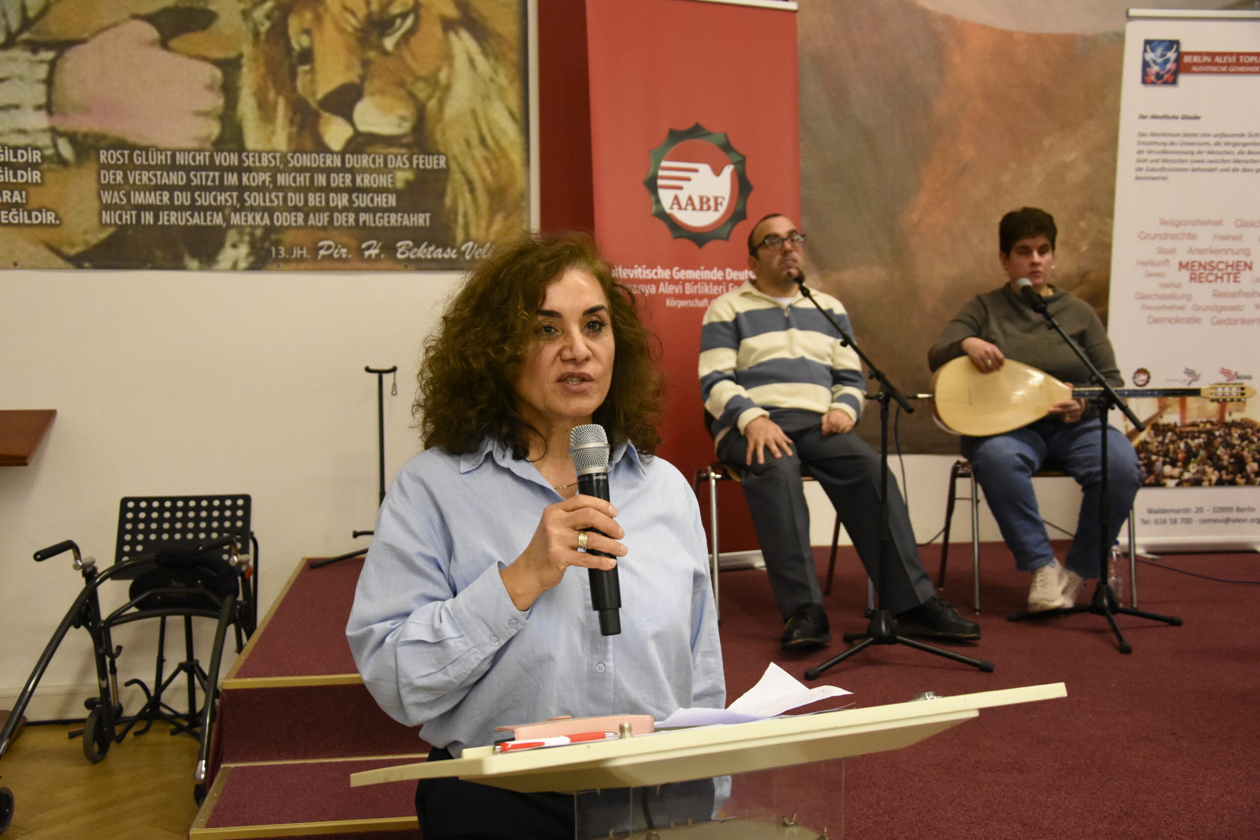 BAT-Cemevi ana salonunda geçtiğimiz Cumartesi (28 Şubat) düzenlenen ve özel gereksinimli canlar ile ailelerin katıldığı seminerin açılış konuşmalarını ‘Yol engel tanımaz’ grubundan BAT YK üyesi Nazire Karaman, BAT YK Başkanı Yüksel Özdemir ve Avrupa Arap Alevileri Federasyonu (AAAF) Başkanı Serhan Namlı yaptı. Karaman Almanya’da resmi istatistikler üzerinden özel gereksinimli (engelli) canların sayılarına dikkat çekerek yaşanan sorunlara değinirken, Başkan Özdemir ile Başkan Namlı ise özel gereksinimli canlarımız ile ilgili iyi bir sınav verilmediğini ve bu konuda yaşanan problemlerin nasıl aşılacağına dair başlıklara dikkat çekti.