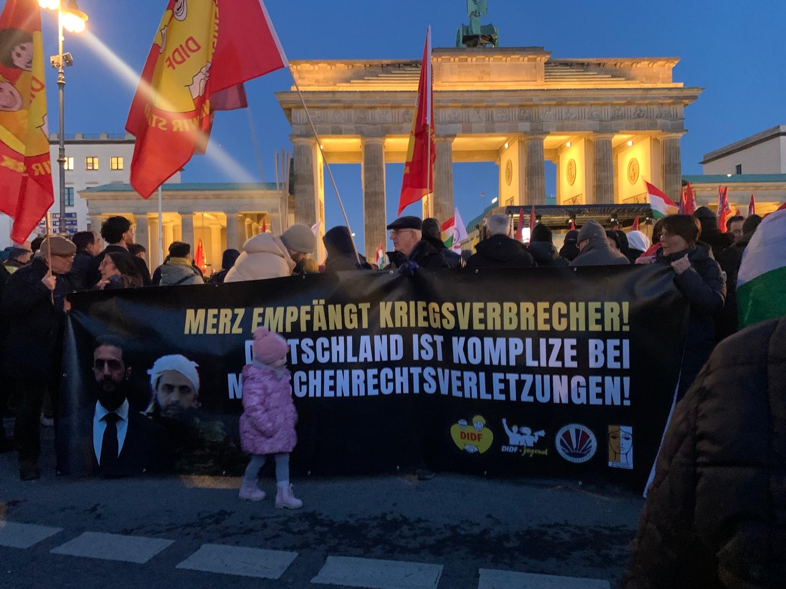 Şara, Suriye’deki iç gelişmeleri gerekçe göstererek Berlin’e yapacağı iki günlük ziyaretini iptal ederken, Demokrasi Platformu ise Federal hükümete ve Başbakan Friedrich Merz’e, teröristlerle diplomatik ilişkiler kurmaması mesajını vermek için eylem kararından vazgeçmedi.