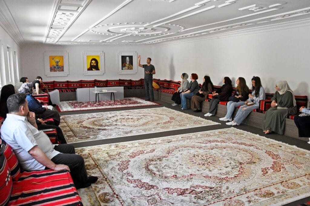 Bugün öğlen saatlerinde gerçekleşen ziyarette öğrencilere BAT-Cemevi Yönetim Kurulu Başkanı Dr. Yüksel Özdemir, 2. Başkan Kadir Şahin, Yönetim Kurulu üyesi Nazire Karaman ve BDAJ Eşbaşkanı Melissa Kurt eşlik etti. Cemevi binasında gezilerek yapılan buluşmada; Alevilik tarihi, inanç felsefesi, Alevilerin Berlin’deki kurumsal tarihi, Cemevi binasındaki Kurulların çalışmaları ile sosyo-kültürel ve inançsal faaliyetler ile öğrencilerin sorularına dair enformasyonları; Özdemir, Şahin ve Kurt yaptı.
