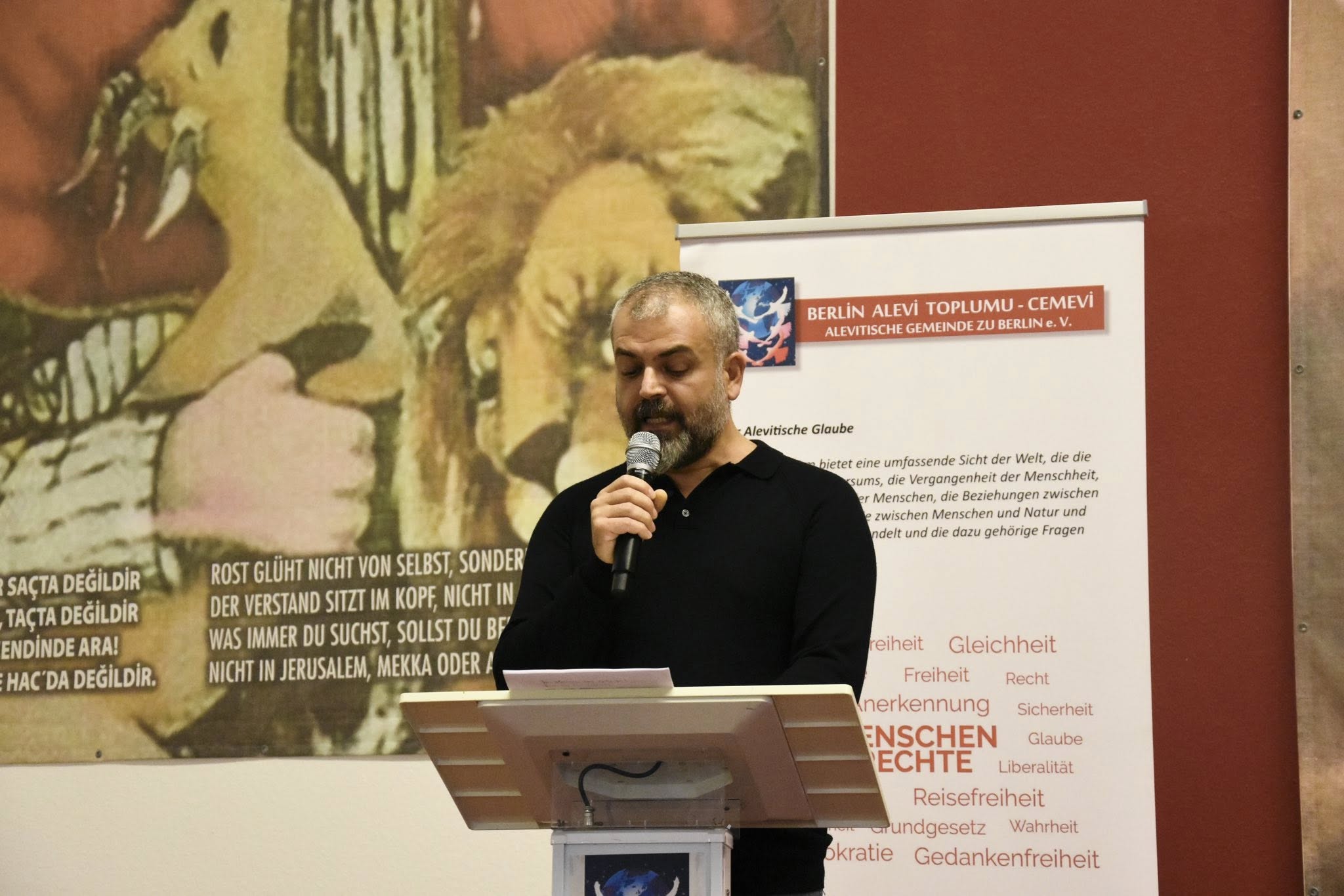 BAT-Cemevi ve Berlin Dersim Kültür Derneği tarafından organize edilen etkinlik dün Cemevi Ana salonunda saygı duruşu, Seyitali Çiçek Dede ile İbrahim Kazımoğlu’nun verdiği gülbenk ve delil uyandırmayla başladı. Ardından Cemevi etkinlik grubu adına Ercan Atmaca, BAT-Cemevi Başkanı Dr. Yüksel Özdemir, Berlin Dersim Kültür Derneği YK üyesi Fatma Çakmak açılış konuşması yaptı. İdam edilen Alevi yol önderlerinin saygıyla anıldığı açılış konuşmalarında yaşananların soykırım olduğuna dikkat çekerek devletin bu soykırımla yüzleşmesi gerektiği ve Alevi önderlerin mezar yerlerinin açıklanması çağrıları yapıldı.