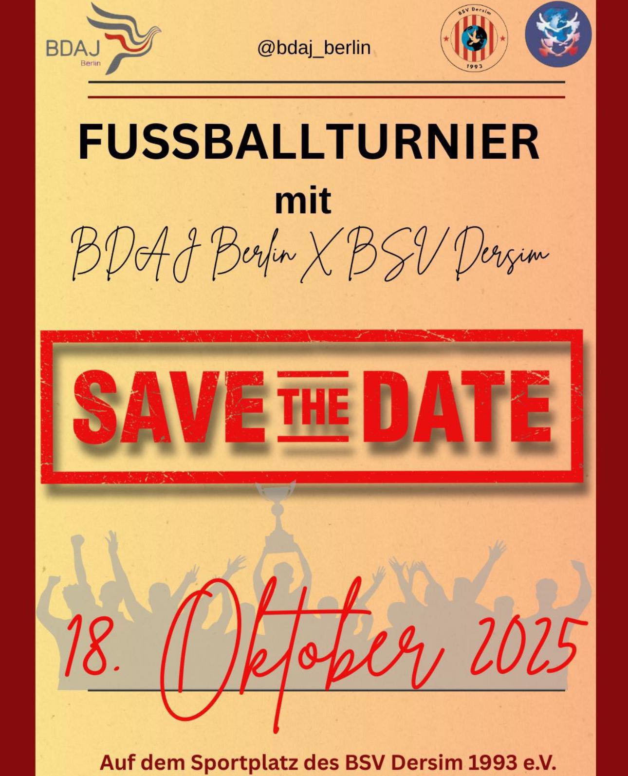 auf euren Wunsch hin ist es endlich soweit: *Wir laden euch herzlich zum großen Fußballturnier des BDAJ in Zusammenarbeit mit dem BSV Dersim 1993 e.V. ein! ![]()